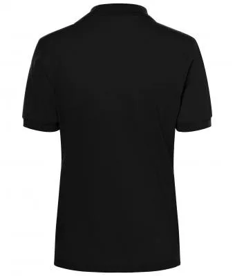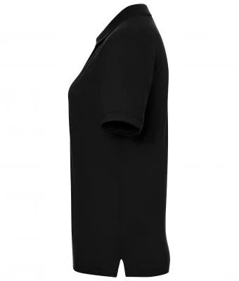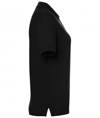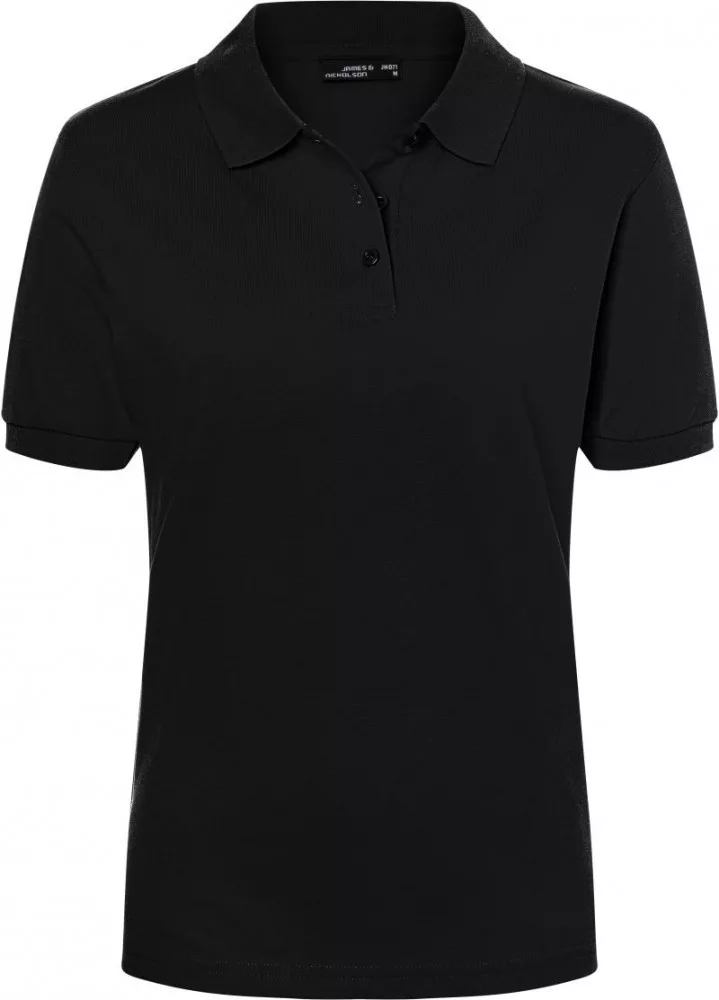 A fekete galléros női póló anyaga 100% pamutból (piké) készült, 195 g/m2 súlyú.