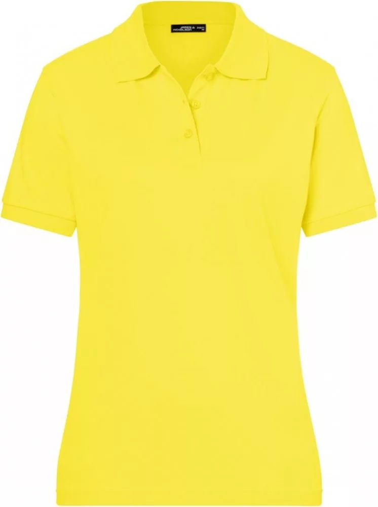 A sárga galléros női póló anyaga 100% pamutból (piké) készült, 195 g/m2 súlyú.