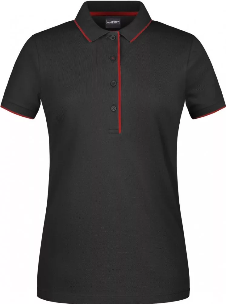 James&Nicholson galléros női póló Pique Polo Stripe 240 fekete-piros