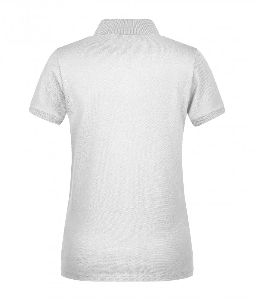 A fehér galléros női póló anyaga 100% pamutból (fésült, gyűrűsfonású) készült, 240 g/m2 súlyú.