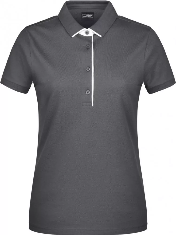 James&Nicholson galléros női póló Single Stripe 240 grafit-fehér