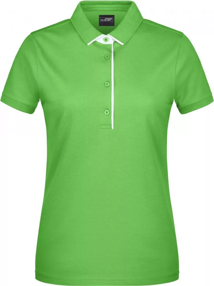 James&Nicholson galléros női póló Single Stripe 240 lime-fehér