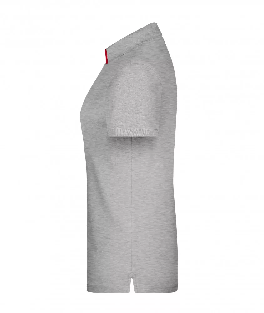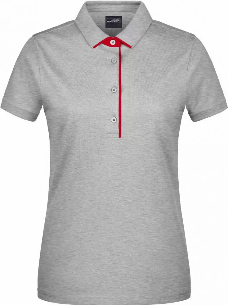James&Nicholson galléros női póló Single Stripe 240 melírozott szürke-piros