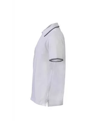 Kiváló minőségű termékünk ez a klasszikus szabású fehér galléros póló kontrasztos színösszeállításban!