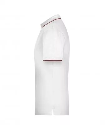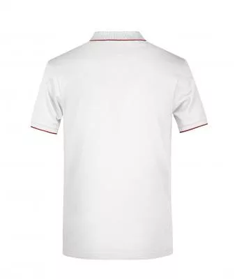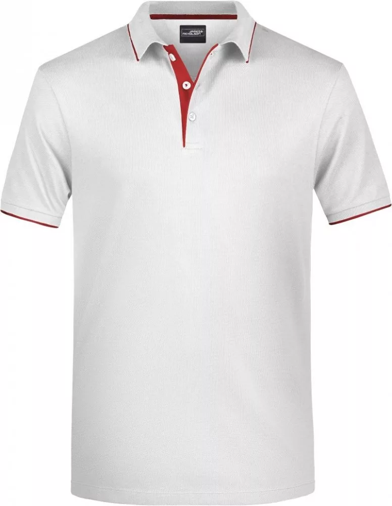Klasszikus szabású, kiváló minőségű fehér galléros póló kontrasztos színösszeállításban