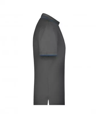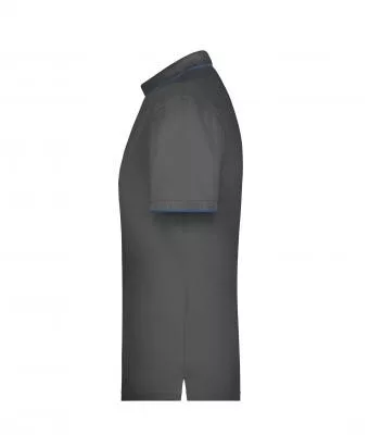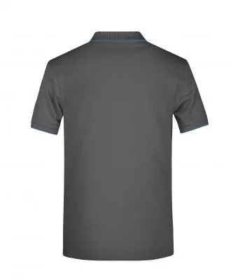 Klasszikus szabású, kiváló minőségű szürke galléros póló kontrasztos színösszeállításban.