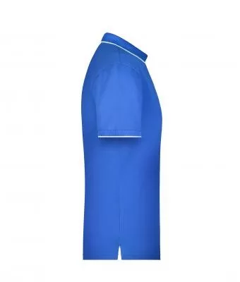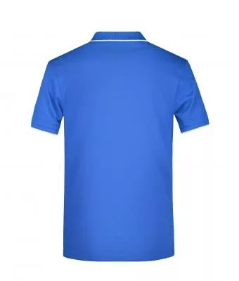 Klasszikus szabású, kiváló minőségű kék galléros póló kontrasztos színösszeállításban.