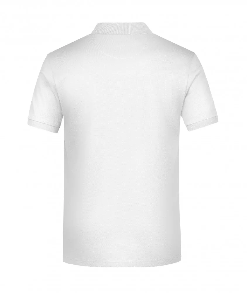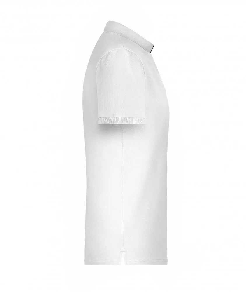 A fehér galléros póló anyaga 100% pamutból (fésült, gyűrűsfonású) készült, 240 g/m2 súlyú.