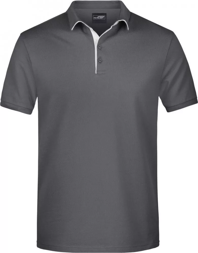 Klasszikus szabású, kiváló minőségű szürke galléros póló kontrasztos színösszeállításban