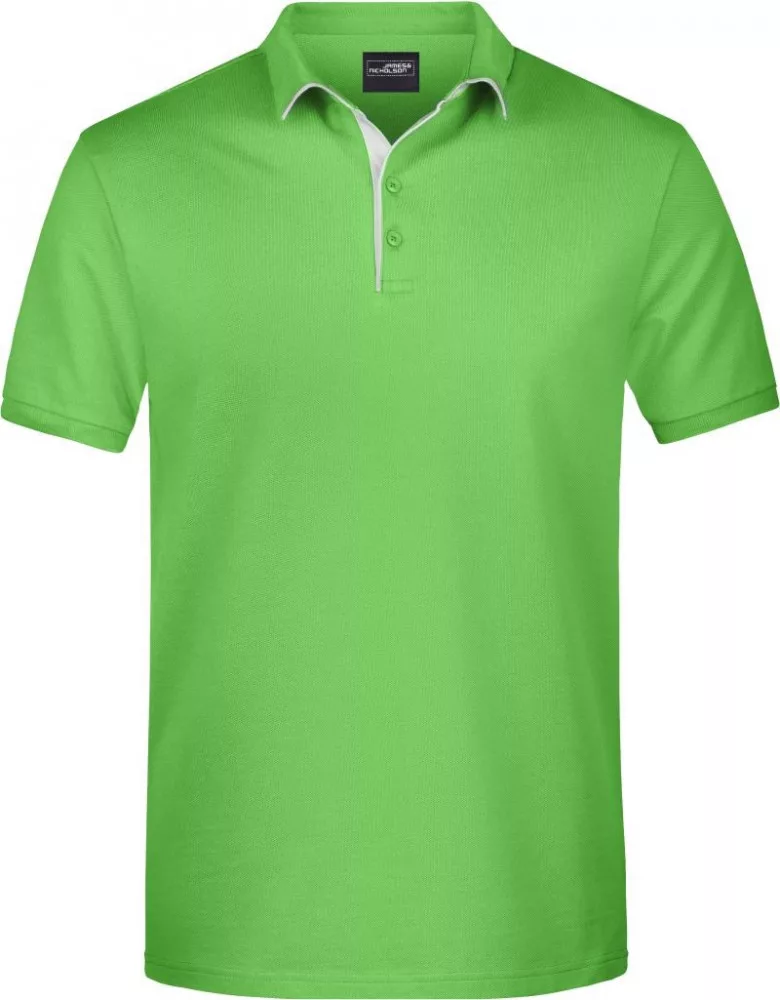 Klasszikus szabású, kiváló minőségű zöld galléros póló kontrasztos színösszeállításban.