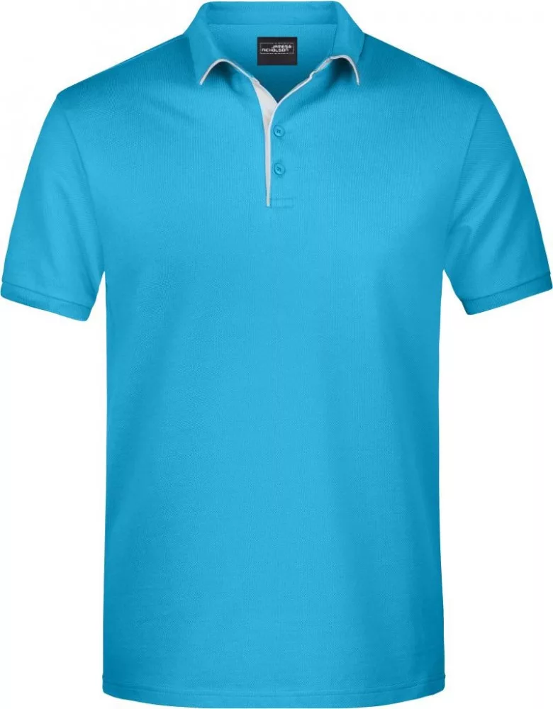 Kiváló minőségű termékünk ez a klasszikus szabású kék galléros póló kontrasztos színösszeállításban.