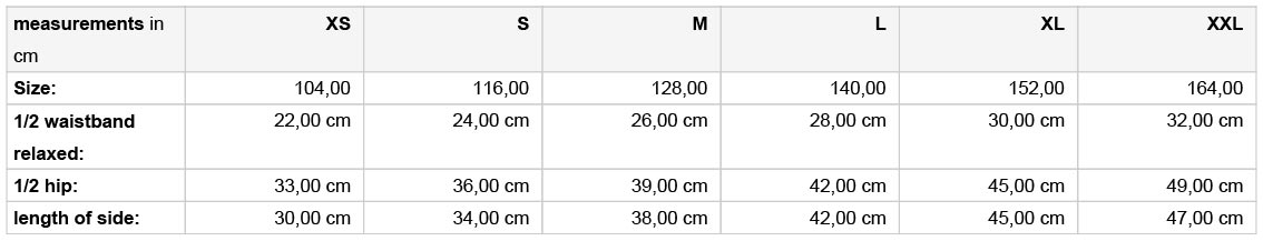 A termék az alábbi méretekben kapható: XS, S, M, L, XL, XXL