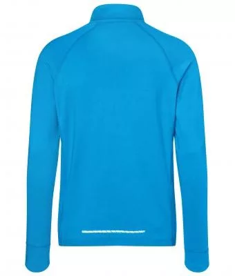 Klasszikus szabású, kiváló minőségű gyorsan száradó, légáteresztő és nedvességelvezető kék hosszú ujjú póló fényvisszaverő elemekkel