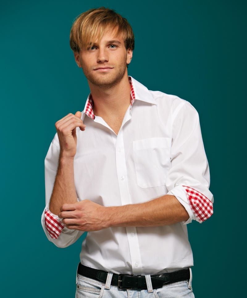 James&Nicholson hosszú ujjú ing Checked Poplin 100 fehér-piros-fehér