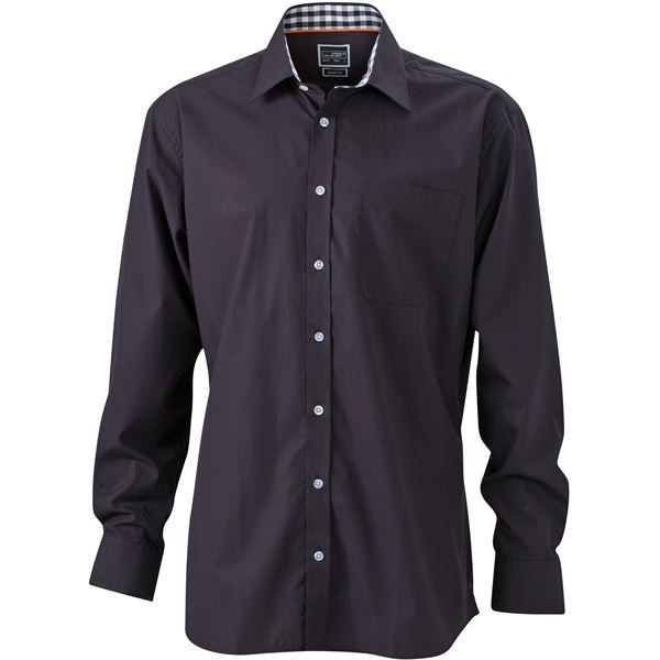 James&Nicholson hosszú ujjú ing Checked Poplin 100 fekete-fekete-fehér