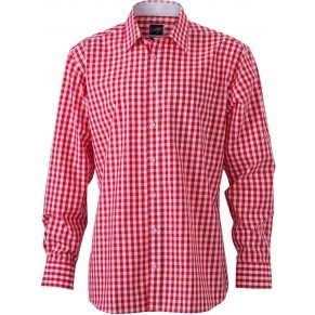 James&Nicholson hosszú ujjú ing Poplin Checked 100 piros-fehér