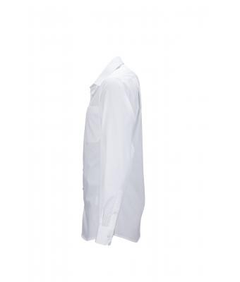 Enyhén karcsúsított szabású, kiváló minőségű fehér hosszú ujjú ing mellzsebbel és kerekített aljjal.
