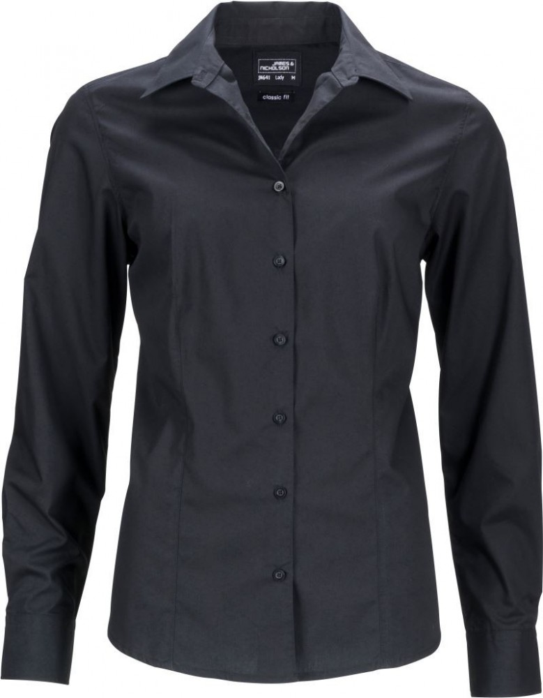 James&Nicholson hosszú ujjú női ing Popline 105 fekete