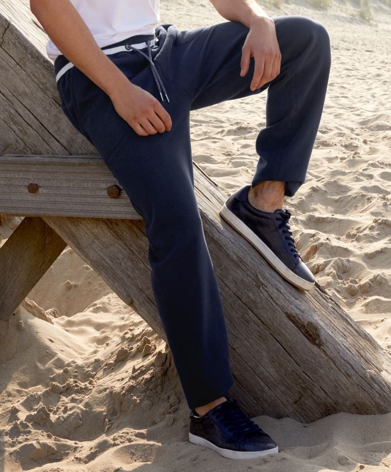 Kényelmes, sportos szabású, kiváló minőségű kék szabadidőnadrág.