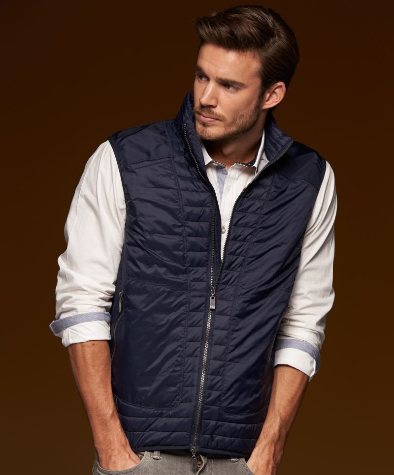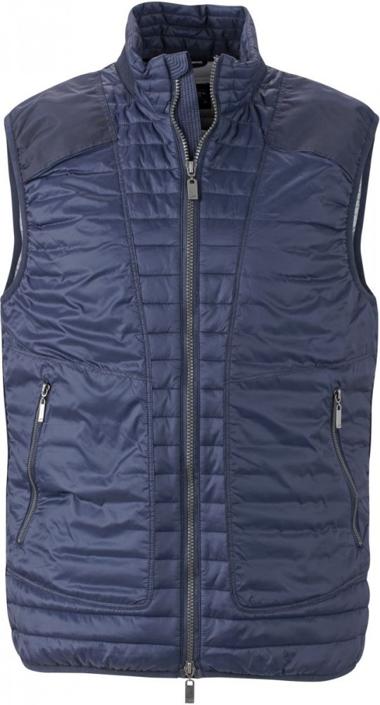 Klasszikus szabású, kiváló minőségű szélálló és vízlepergető kék mellény 2 cipzáras oldalzsebbel.