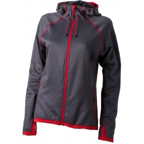James&Nicholson női dzseki Hooded Fleece 280 grafitszürke-piros