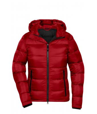 Modern, enyhén karcsúsított szabású, James&Nicholson JN1167 női téli dzseki, állítható kapucnival, a teljes hosszúságú rejtett szélvédő állvédővel, YKK 2 irányú cipzárral, 1 belső- valamint 2 cipzáras oldalzseb, elasztikus belső mandzsettával és kontrasztos színű béléssel, újrahasznosított poliészter Ripp-Stop szövetből, újrahasznosított poliészter béléssel, DuPont™ Sorona® Aura párnázattal (megújuló, bio alapanyag), valamint víz- és szennyeződéstaszító a BIONIC-FINISH®ECO bevonattal!