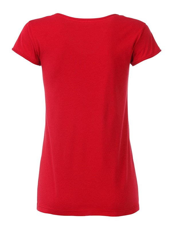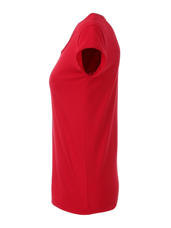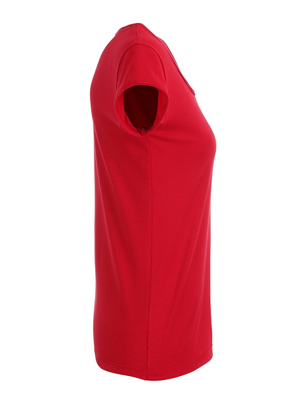 Enyhén karcsúsított szabású, kiváló minőségű piros rövid ujjú női póló.
