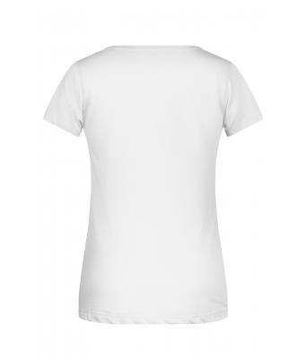 A fehér rövid ujjú női póló anyaga 100% pamutból (organikus) készült, 120 g/m2 súlyú.