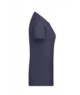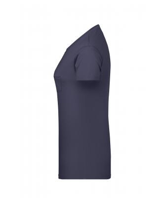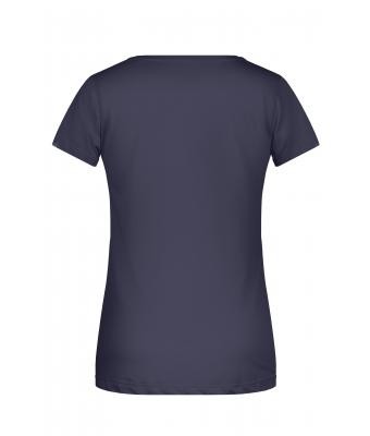 A kék rövid ujjú női póló anyaga 100% pamutból (organikus) készült, 120 g/m2 súlyú.