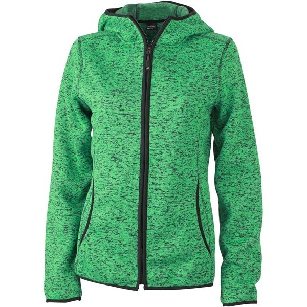 James&Nicholson női pulóver Knitted Hooded Fleece 320 melírozott zöld-fekete