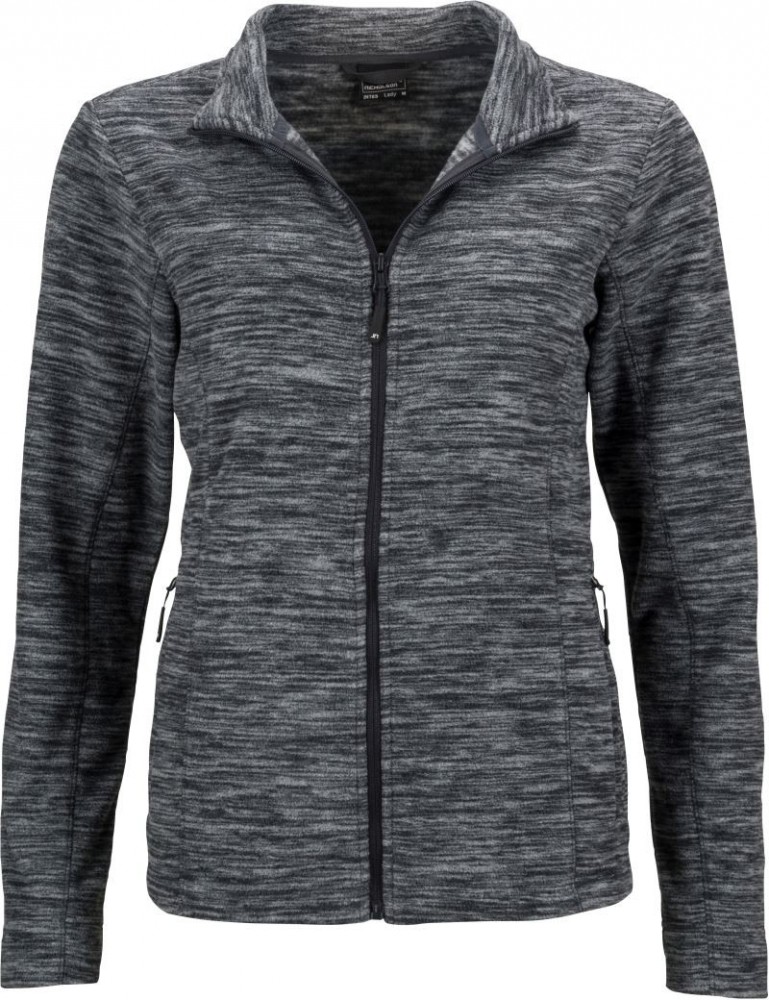 James&Nicholson női pulóver Melange Fleece Jacket 200 melírozott szürke-grafit
