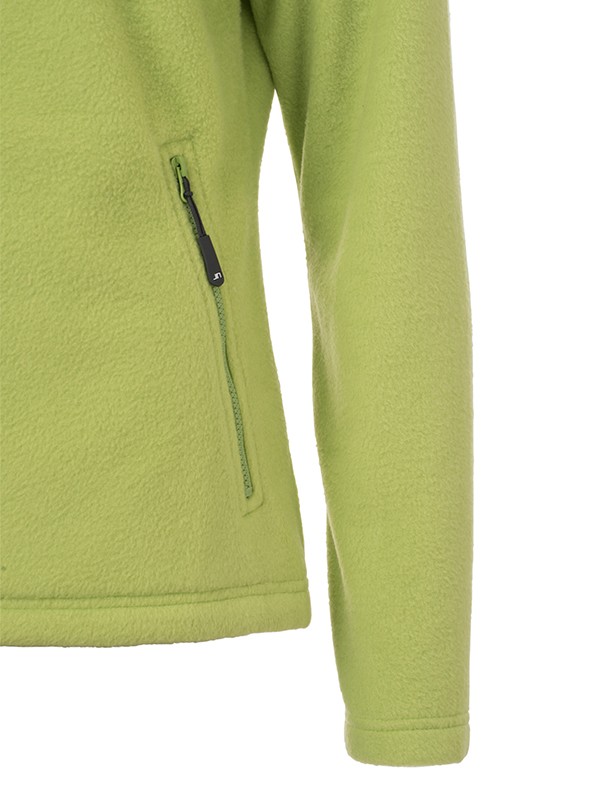 A zöld női pulóver anyaga 100% poliészterből készült, 280 g/m² súlyú. Göbösödés ellen kezelve.