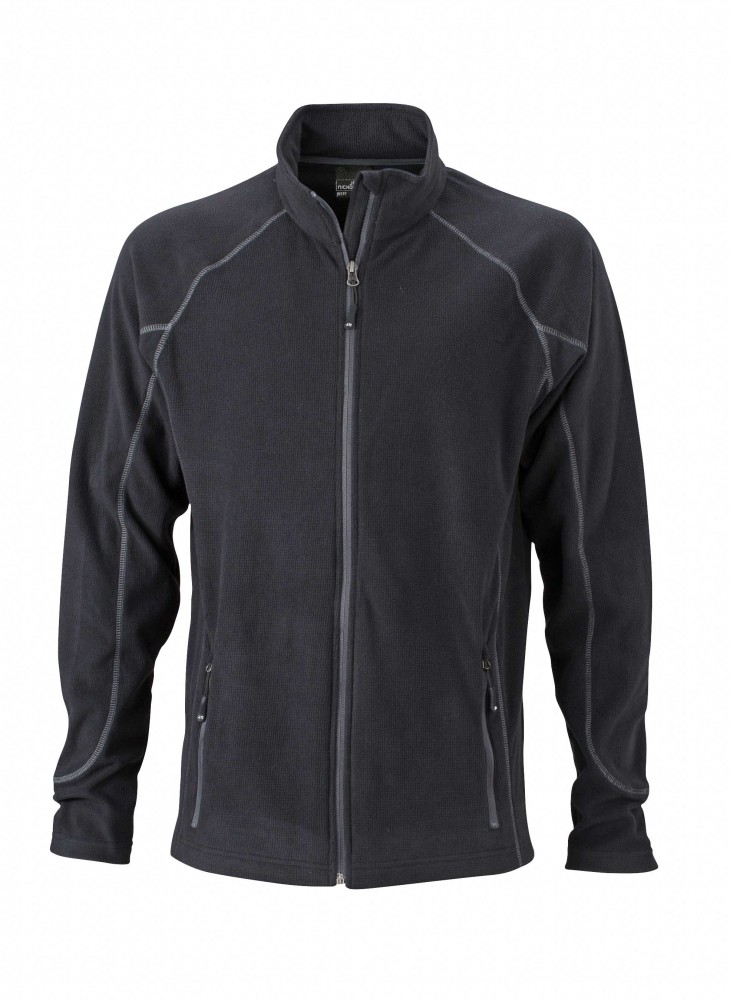 James&Nicholson polár pulóver Structure Fleece Jacket 190 fekete-szürke