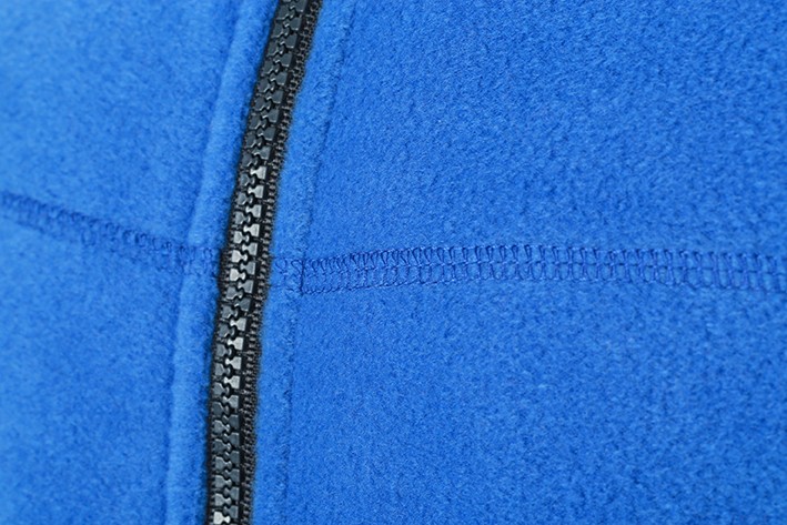 A kék polár pulóver anyag 100% poliészterből készült, 280 g/m² súlyú. Göbösödés gátló eljárással készült. A polár pulóver kontrasztos színű ujjakkal és oldalsó résszel készült. Rejtett cipzáras védelemmel, 2 oldalzsebbel és cipzáras zsebbel készült.