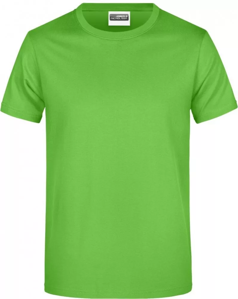 A zöld rövid ujjú póló anyaga 100% pamutból (single jersey) készült, 150 g/m2 súlyú.