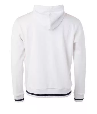 Klasszikus szabású, kiváló minőségű fehér pulóver kétrétegű kapucnival és kenguru zsebbel