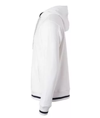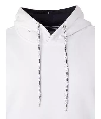Kiváló minőségű termékünk ez a klasszikus szabású fehér pulóver kétrétegű kapucnival és kenguru zsebbel.