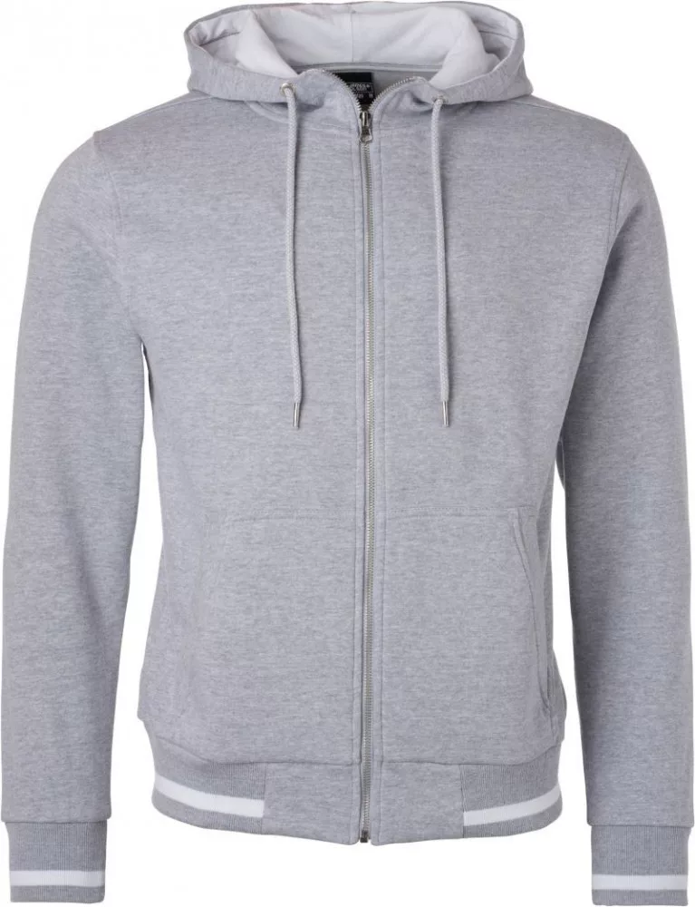 James&Nicholson pulóver Club Sweat Jacket 300 melírozott szürke-fehér