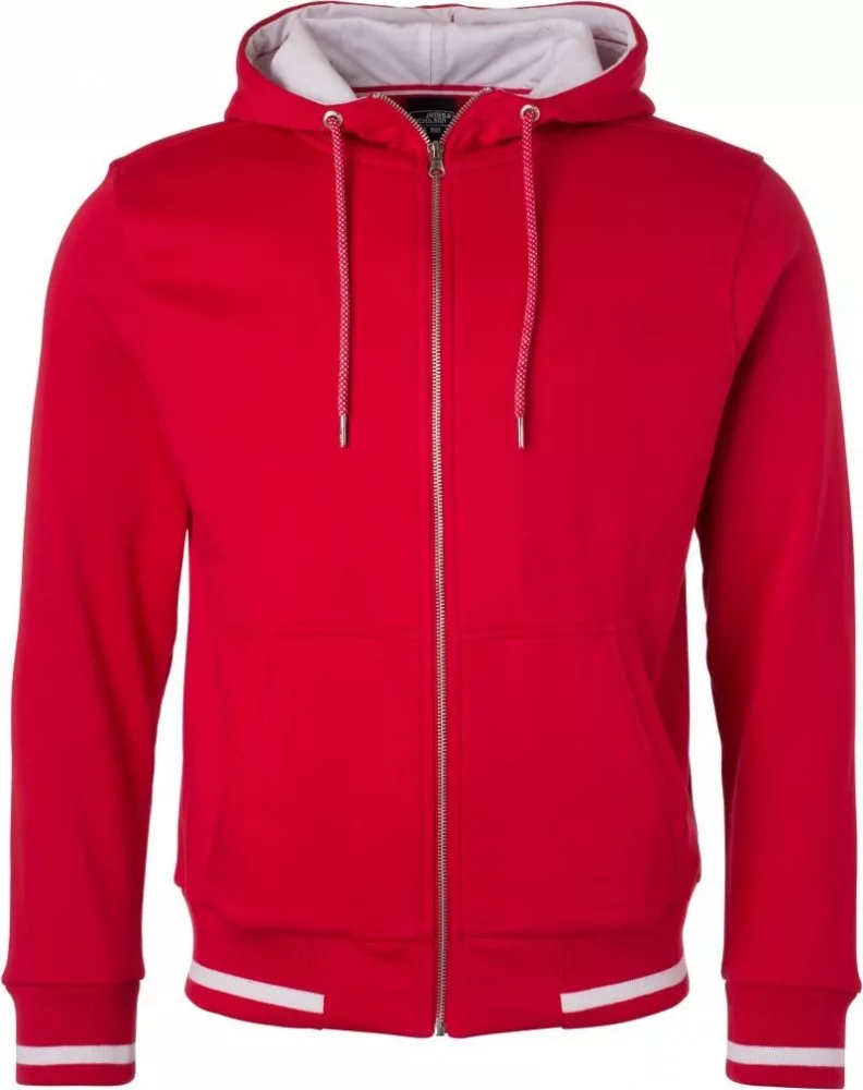 James&Nicholson pulóver Club Sweat Jacket 300 piros-fehér