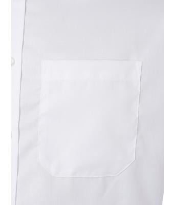 Enyhén karcsúsított szabású, kiváló minőségű fehér rövid ujjú ing vasalásmentes pamut anyagból kerekített aljjal és rávarrott mellzsebbel