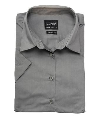 James&Nicholson rövid ujjú női blúz Business Popline 105 acélszürke