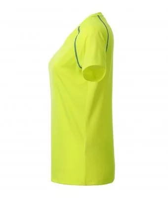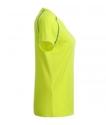 Karcsúsított szabású, kiváló minőségű légáteresztő, nedvességelvezető és gyorsan száradó sárga rövid ujjú női póló