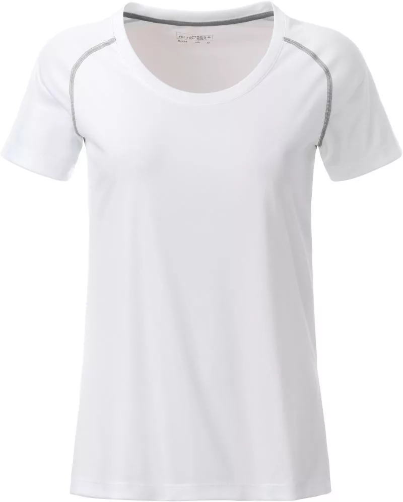Kiváló minőségű termékünk ez a karcsúsított szabású, légáteresztő, nedvességelvezető és gyorsan száradó fehér rövid ujjú női póló!