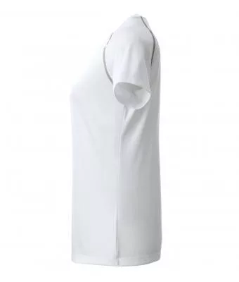 Karcsúsított szabású, kiváló minőségű légáteresztő, nedvességelvezető és gyorsan száradó fehér rövid ujjú női póló