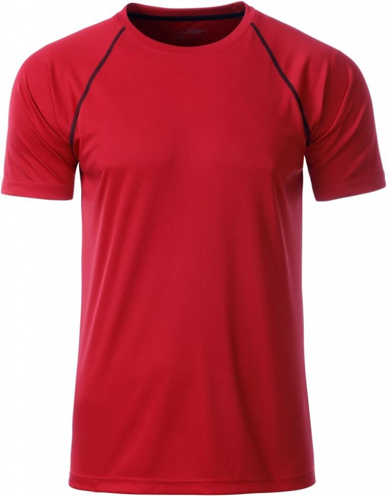 Kiváló minőségű termékünk ez a klasszikus szabású légáteresztő, nedvességelvezető és gyorsan száradó piros rövid ujjú póló!