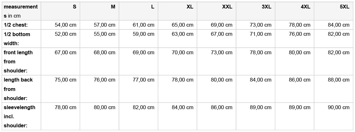 A termék az alábbi méretekben kapható: S, M, L, XL, XXL, 3XL