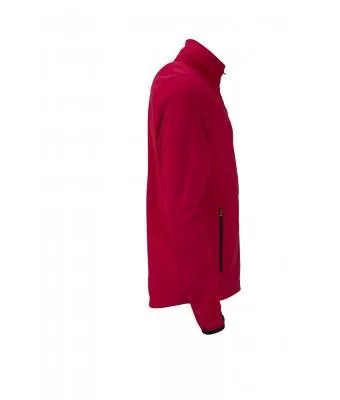 Klasszikus szabású, kiváló minőségű vízlepergető, szélálló és légáteresztő piros softshell dzseki kontrasztos színösszeállításban.