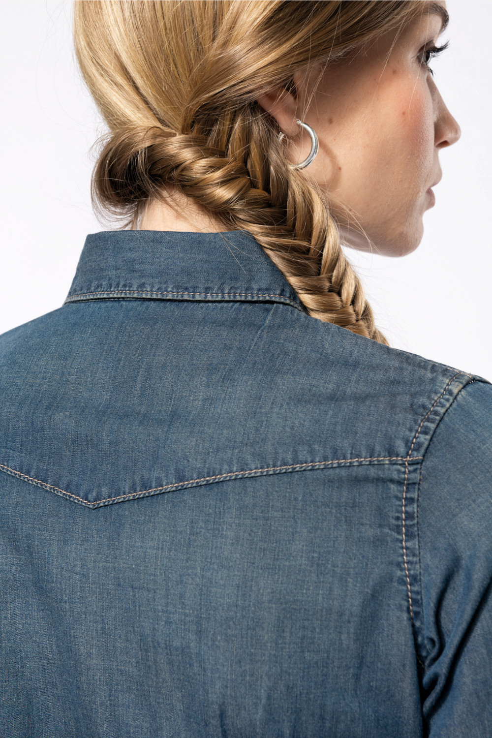 Kariban hosszú ujjú női ing Denim 150 farmerkék