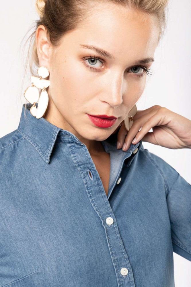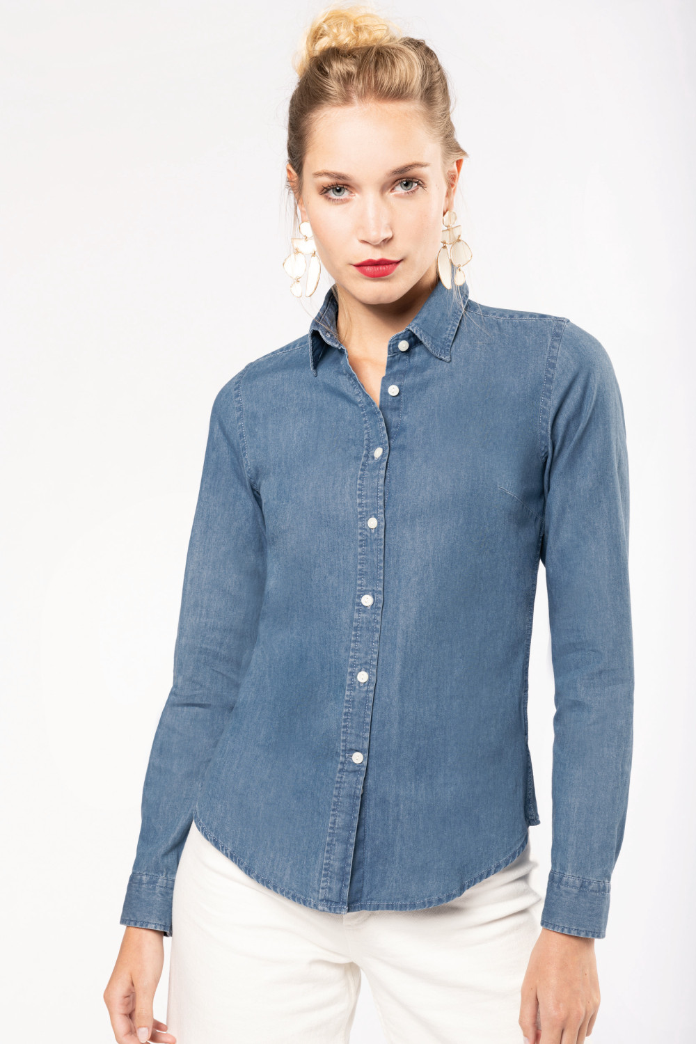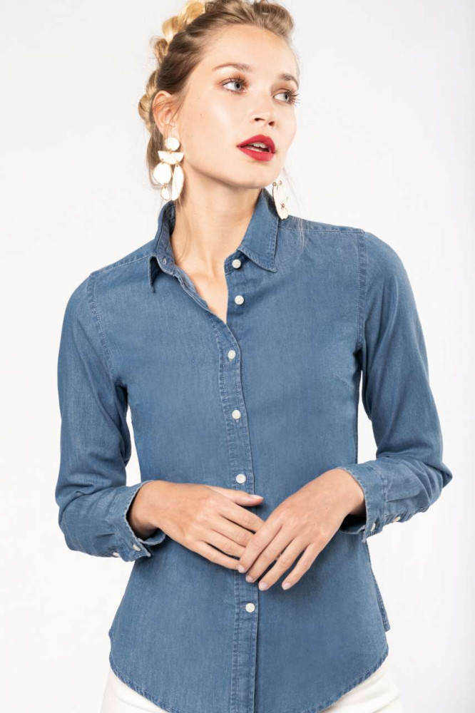 Kariban hosszú ujjú női ing Denim 160 chambray kék