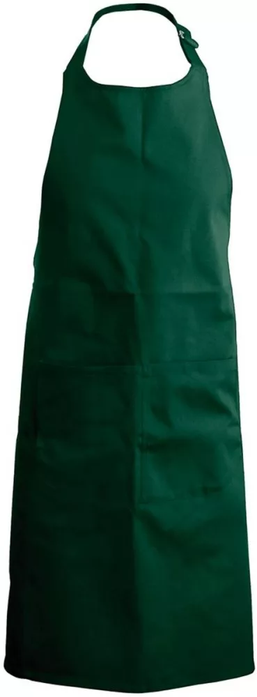 Kiváló minőségű, pamutból készült zöld melles kötény osztott, rávarrt zsebbel.